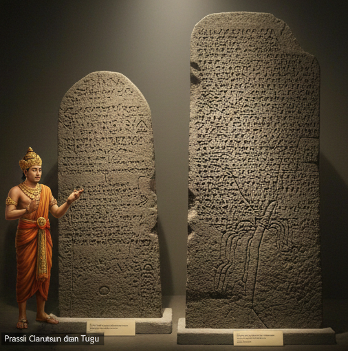 - Gambar & Simbol: Ukiran telapak kaki, bunga teratai, dan simbol Airawata yang menjadi bukti awal estetika seni rupa Hindu di Jawa Barat.