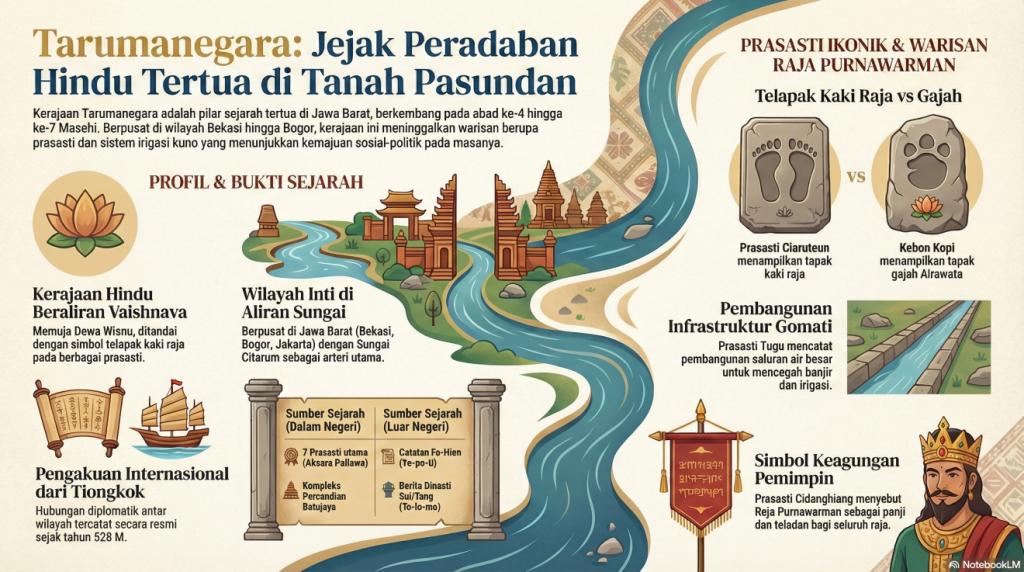 Kerajaan Tarumanegara berdiri sebagai salah satu pilar sejarah tertua di Nusantara, khususnya di wilayah Jawa bagian barat. Sebagai kerajaan Hindu yang berkembang pesat antara abad ke-4 hingga ke-7 Masehi, Tarumanegara tidak hanya meninggalkan prasasti, tetapi juga cetak biru peradaban yang memengaruhi struktur sosial dan politik di Indonesia di masa depan.
