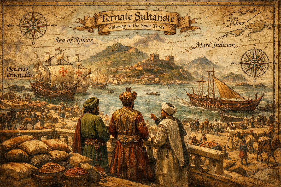 Kepulauan Maluku, yang sejak masa silam dijuluki sebagai The fabled Spice Islands, merupakan kawasan yang memiliki daya tarik geopolitik dan ekonomi yang luar biasa bagi peradaban dunia. Di antara gugusan pulau vulkanis tersebut, Pulau Ternate, yang mulanya dikenal sebagai Pulau Gapi, tumbuh menjadi episentrum kekuatan politik dan perdagangan yang mendominasi Nusantara bagian timur selama berabad-abad. Sebagai salah satu entitas politik Islam tertua di Indonesia, Kesultanan Ternate tidak hanya menjadi pemain kunci dalam distribusi cengkih secara global, tetapi juga menjadi benteng pertahanan terakhir dalam membendung ambisi kolonial awal bangsa Eropa di wilayah Pasifik. Laporan ini akan mengeksplorasi secara komprehensif perjalanan sejarah Kesultanan Ternate, mulai dari fondasi awal pembentukannya hingga warisan kulturalnya yang tetap eksis.