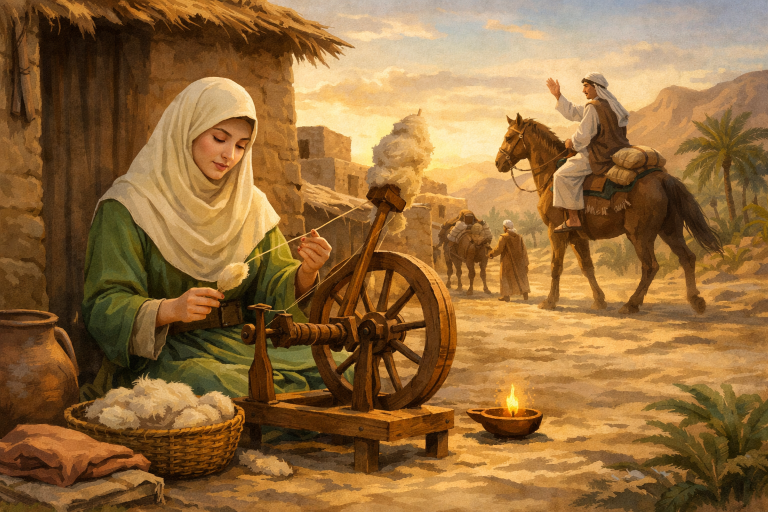 Di kota Mekah yang dikelilingi bukit-bukit pasir tinggi dan matahari yang selalu terik membakar, hidup seorang gadis kecil bernama Zainab binti Muhammad. Ia adalah anak pertama dari pasangan Muhammad dan Khadijah, dua orang yang sangat saling mencintai dan dikenal sebagai keluarga yang baik hati di antara suku Quraisy. Zainab kecil sering bermain di halaman rumah sederhana mereka, berlari-lari sambil tertawa riang bersama angin gurun yang kadang membawa debu halus ke wajahnya yang mungil. Ibunya, Khadijah, selalu mengajarinya cara menjahit kain dengan rapi, memasak makanan enak, dan berbicara dengan lembut kepada semua orang yang datang berkunjung. Ayahnya, Muhammad, yang dijuluki Al-Amin karena kejujurannya, sering duduk bersama Zainab di bawah pohon kurma sambil bercerita tentang kebaikan, keadilan, dan mimpi-mimpi indah tentang masa depan yang lebih baik bagi semua manusia. Saat itu, masyarakat Mekah masih menyembah banyak berhala di sekitar Ka’bah, tetapi keluarga kecil ini hidup dengan nilai-nilai mulia yang membuat mereka berbeda dari yang lain. Zainab suka mendengarkan ayahnya bercerita tentang bintang-bintang di langit malam yang cerah, dan ia sering bertanya mengapa langit begitu luas dan indah. Khadijah selalu tersenyum melihat putrinya yang cerdas dan penuh rasa ingin tahu itu, sambil mengelus rambutnya yang hitam panjang. Mereka hidup bahagia meski sederhana, dengan cinta yang hangat mengisi setiap sudut rumah. Suatu hari, Zainab kecil bertanya kepada ayahnya tentang makna kehidupan, dan Muhammad menjawab dengan sabar sambil memeluknya erat. Zainab belajar bahwa kebaikan adalah harta paling berharga di dunia ini. Ia sering membantu ibunya melayani tamu, membawa air segar, dan tersenyum ramah kepada siapa saja. Masa kecilnya penuh dengan pelajaran kecil yang membentuk hatinya menjadi lembut dan kuat. Kota Mekah dengan pasar ramainya menjadi tempat Zainab belajar tentang berbagai orang dan budaya. Ia menyaksikan ayahnya berdagang dengan jujur, tidak pernah menipu meski bisa mendapat untung lebih banyak. Zainab bangga memiliki ayah seperti itu, dan ia berjanji dalam hati akan meniru kebaikan itu kelak. Malam hari, keluarga berkumpul, mendengarkan cerita-cerita lama dari Khadijah tentang nenek moyang mereka. Zainab tidur dengan tenang, bermimpi tentang hari esok yang penuh harapan.