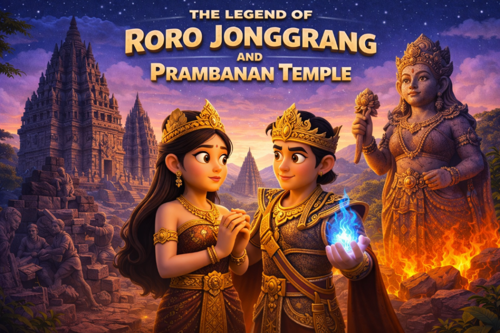 Dahulu kala di jantung Pulau Jawa, terdapat dua kerajaan besar yang saling bertetangga: Kerajaan Pengging yang makmur dan Kerajaan Baka yang dipimpin oleh kaum raksasa. Kerajaan Pengging diperintah dengan bijaksana oleh Prabu Damar Moyo, yang memiliki seorang putra sakti mandraguna bernama Bandung Bondowoso. Di sisi lain, Kerajaan Baka dikuasai oleh Prabu Baka, seorang raja raksasa yang kejam dan rakus, namun ia memiliki seorang putri kandung yang sangat cantik jelita bernama Roro Jonggrang, yang secara harfiah berarti “Perawan Ramping”.